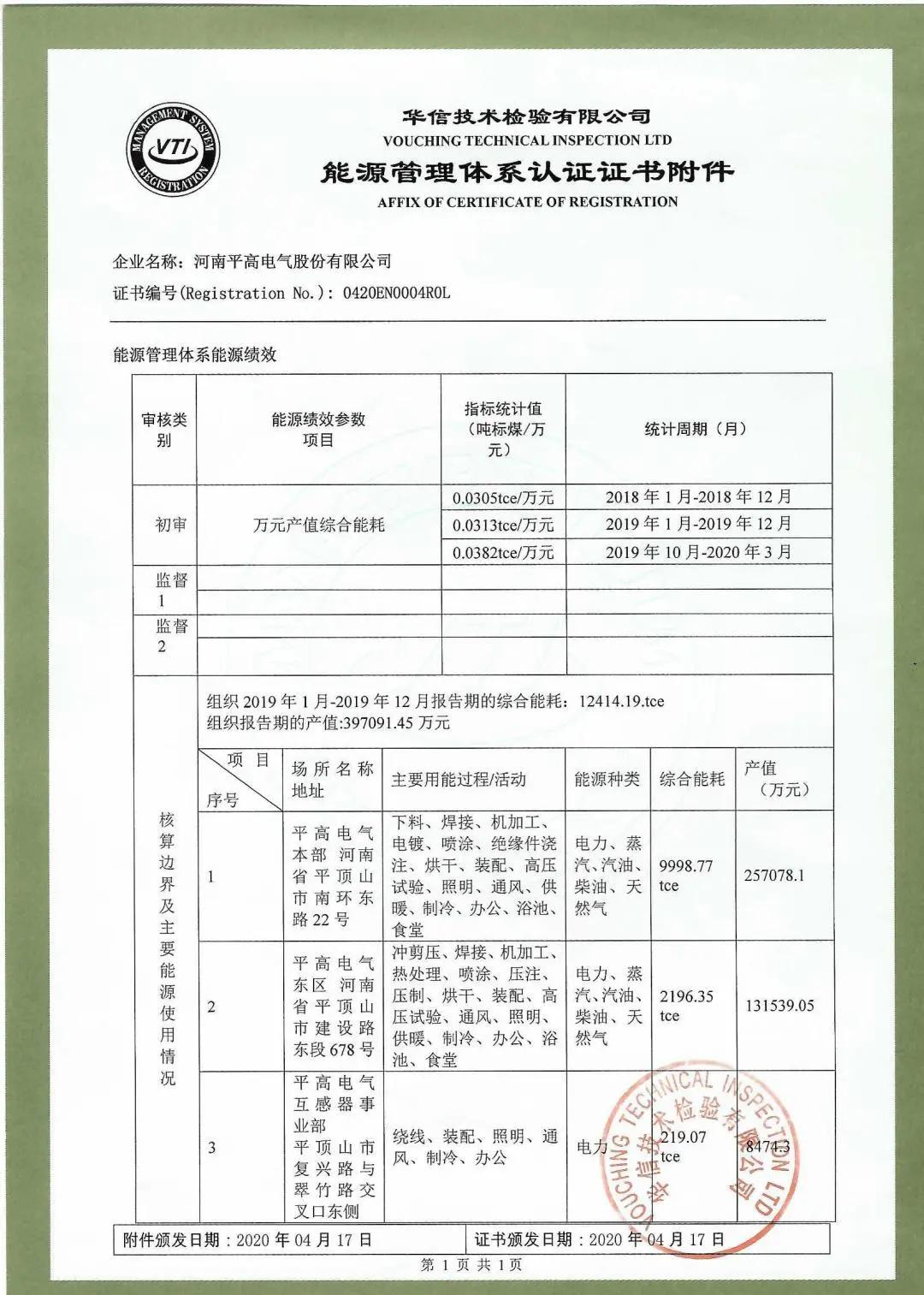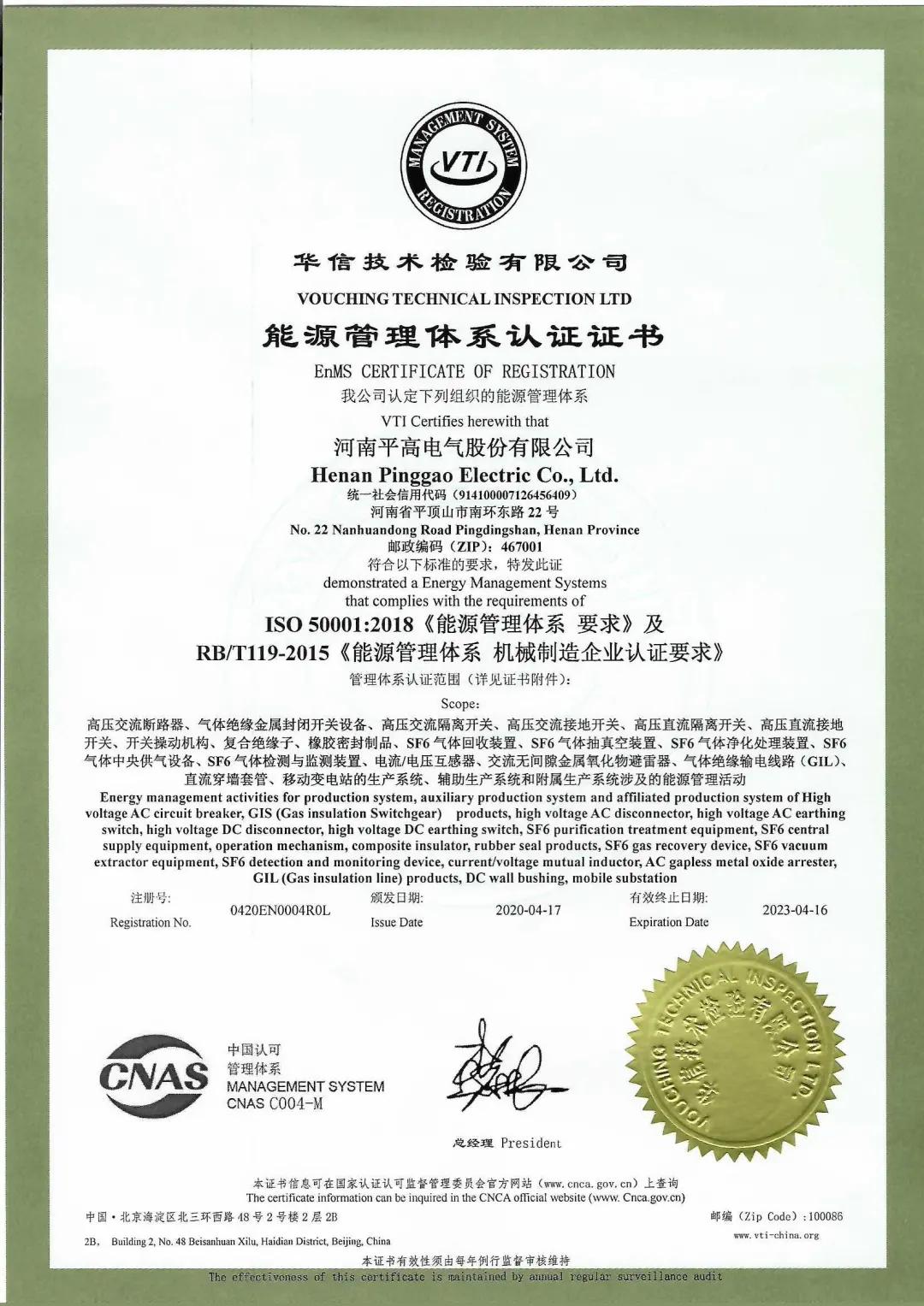2020年,平高电气取得了河南省国家绿色工厂认证,并入选河南省节能减排科技创新示范企业。平高电气致力于新型绿色环保电力设备研制,助力企业清洁低碳转型。实施新型绿色环保电力设备研制及企业自身节能升级改造,推广使用节能新技术、新工艺、新设备、新材料。引进先进智能型电气火灾监控系统,着力提升火灾预防能力和应急管理水平。结合新一代信息技术开展能源在线监测建设,基本实现能源信息化、数字化管理,能源利用率显著提高,节能增效成绩显著,2020年实现能源降本约950万元,综合能耗同比下降约8,9%,实现产值节能量约995吨标煤,并于2020年取得国家能源管理体系认证证书。 91高清视频播放。