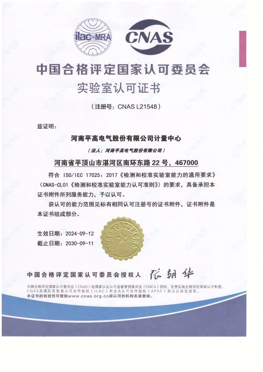 "91官方视频站" 再获国家认可!平高电气一个实验室通过CNAS资质认证!
