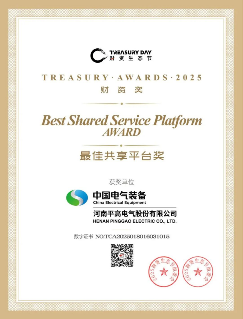 平高电气荣获2025财资生态节“最佳共享平台奖”